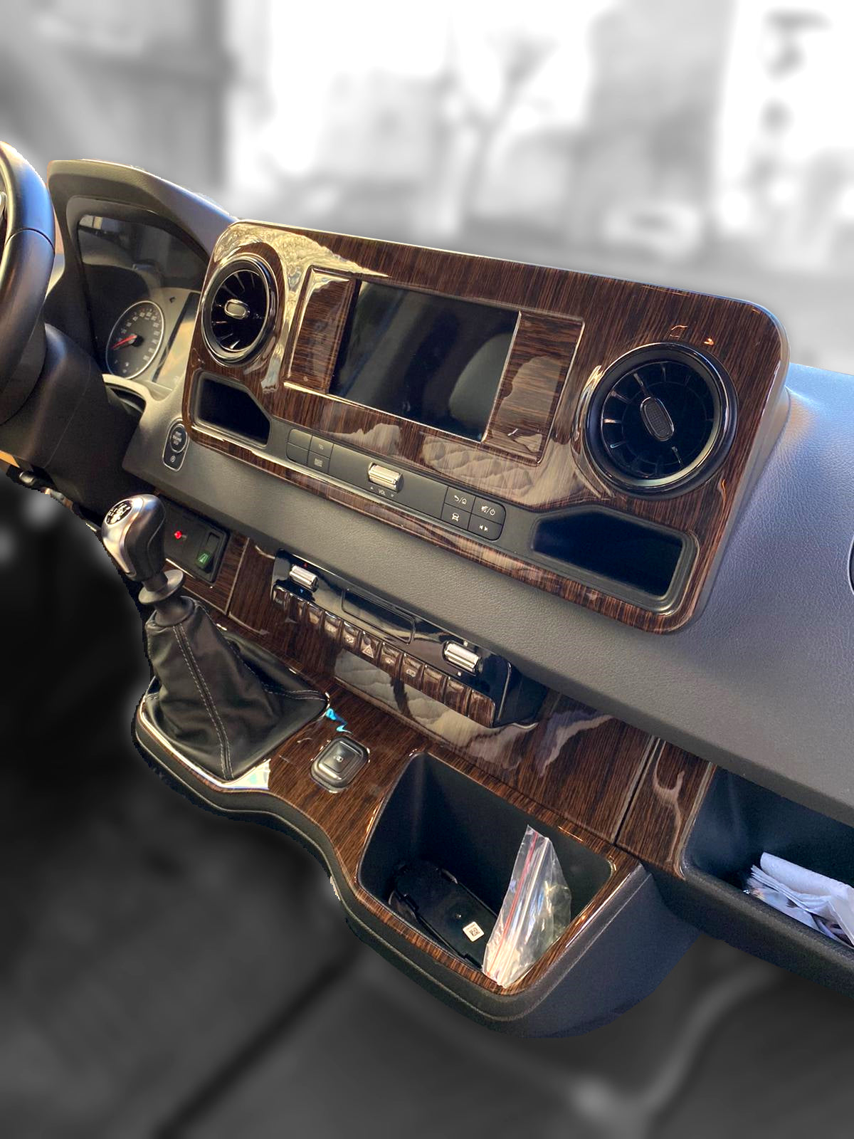 For Mercedes Sprinter W907 2019+ Trim Console Dashboard Decor Frame Set Cockpit Decor Dashboard Kit Wood Carbon Silver Black Cover Coating
